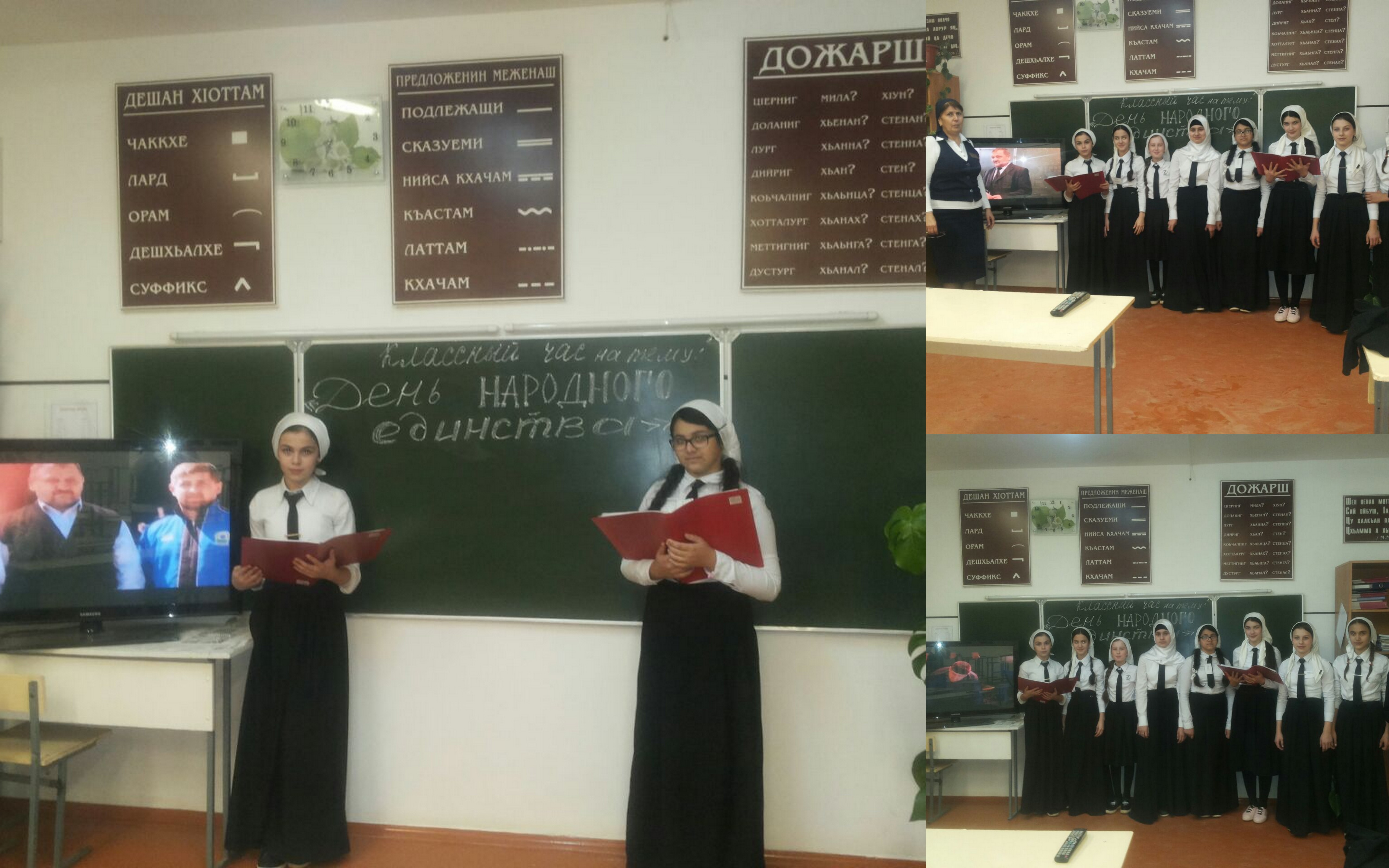 28.10.2016С целью организации работы по духовно-нравственному и военно-патриотическому воспитанию уч-ся; формирования высокого гражданского и патриотического сознания, уважения к истории своей Родины ,в школе проведены тематические классные часы и беседы с учащимися (5-11 классов), оформлено здание школы, проведен конкурс чтецов а также круглый стол на тему: «А-Х Кадыров-пример для единения народа».