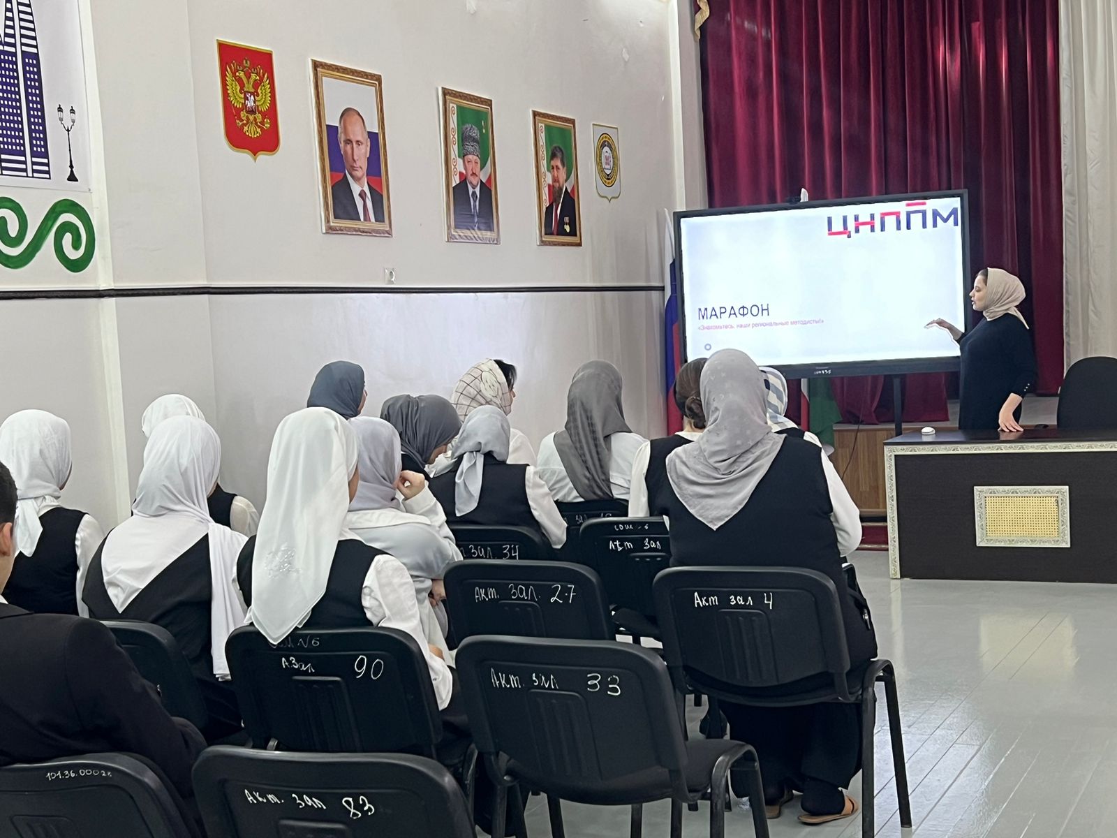 14.11.2023В рамках реализации концепции создания и функционирования региональной системы научно-методического сопровождения педагогических работников и управленческих кадров Чеченской Республики, утверждённой приказом Министерства образования и науки Чеченской Республики от 23 декабря 2022 г. 1864-п. 14 ноября 2023 года прошёл семинар «Знакомьтесь: наши региональные методисты!» на базе МБОУ «СОШ 6 г. Урус-Мартан». В семинаре приняли участие учителя-предметники МБОУ «СОШ 6 г. Урус-Мартан».Провела семинар, заместитель директора по МР, Ахмадова Иман Рамзановна.