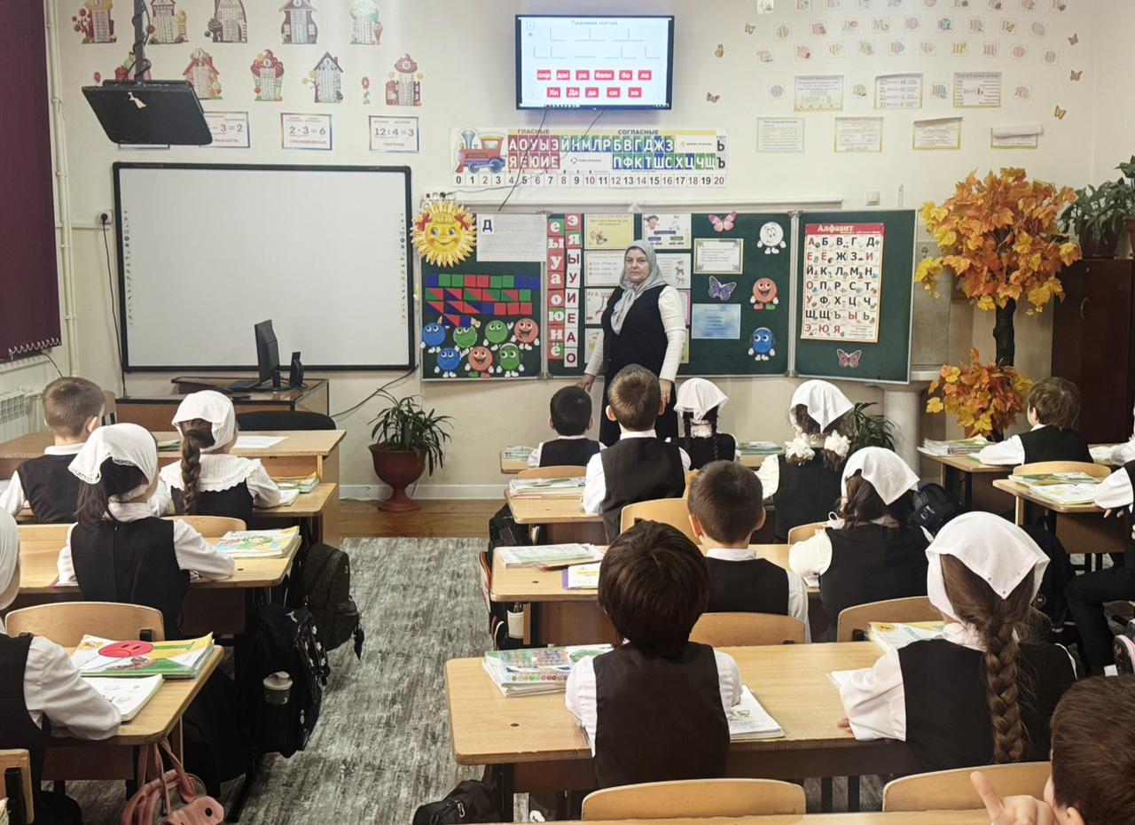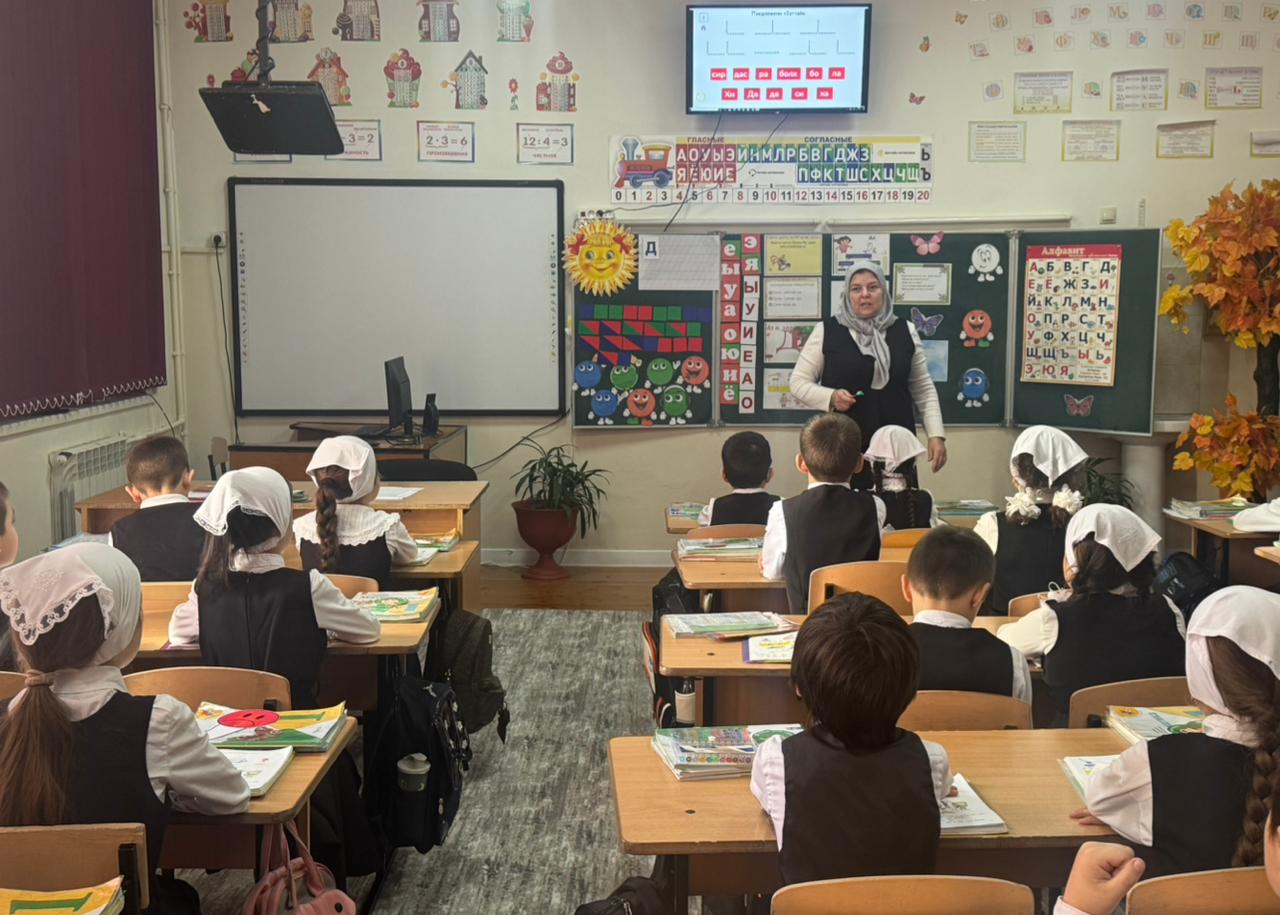21.11.2025В целях реализации проекта "Год начальной школы ",21 ноября в МБОУ " СОШ √6 был проведён открытый урок по литературному чтению родном чеченском языке в 1 классе "Б".Классный руководитель Тапаева Л.А.Тема урока:Согласные звуки [д-д‘], буква Д. Цель урока:организовать деятельность учащихся способом обозначения звуков [д-д‘] буквой "Д" и чтению слов с этой буквой. Задачи:Определить какой буквой обозначаются звуки [д-д‘].Дать полную характеристику звукам. Прочитать слоги, слова с новой буквой. Урок соответствует требованиям программы обучения 1-го класса по ФГОС. На уроке были использованы все необходимые учебные пособия и дополнительные материалы. К ним можно отнести наглядный материал, раздаточный материал, электронную презентацию, a также было использовано мультимедийное учебное пособие по чеченскому языку "Абат", которое позволило детям легко и увлекательно изучать родной язык через интерактивное задание и игровые элементы. Использовались методы мотивации учащихся на протяжении всего урока. Активизация деятельности прошла быстро.Этап рефлексии показал, что урок удался, тема урока была понятна и интересна, дети чувствовали себя во время урока комфортно.